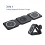 Carregador sem fios dobrável 3 em 1 de 15 W para smartphones, relógios e auscultadores. Preto